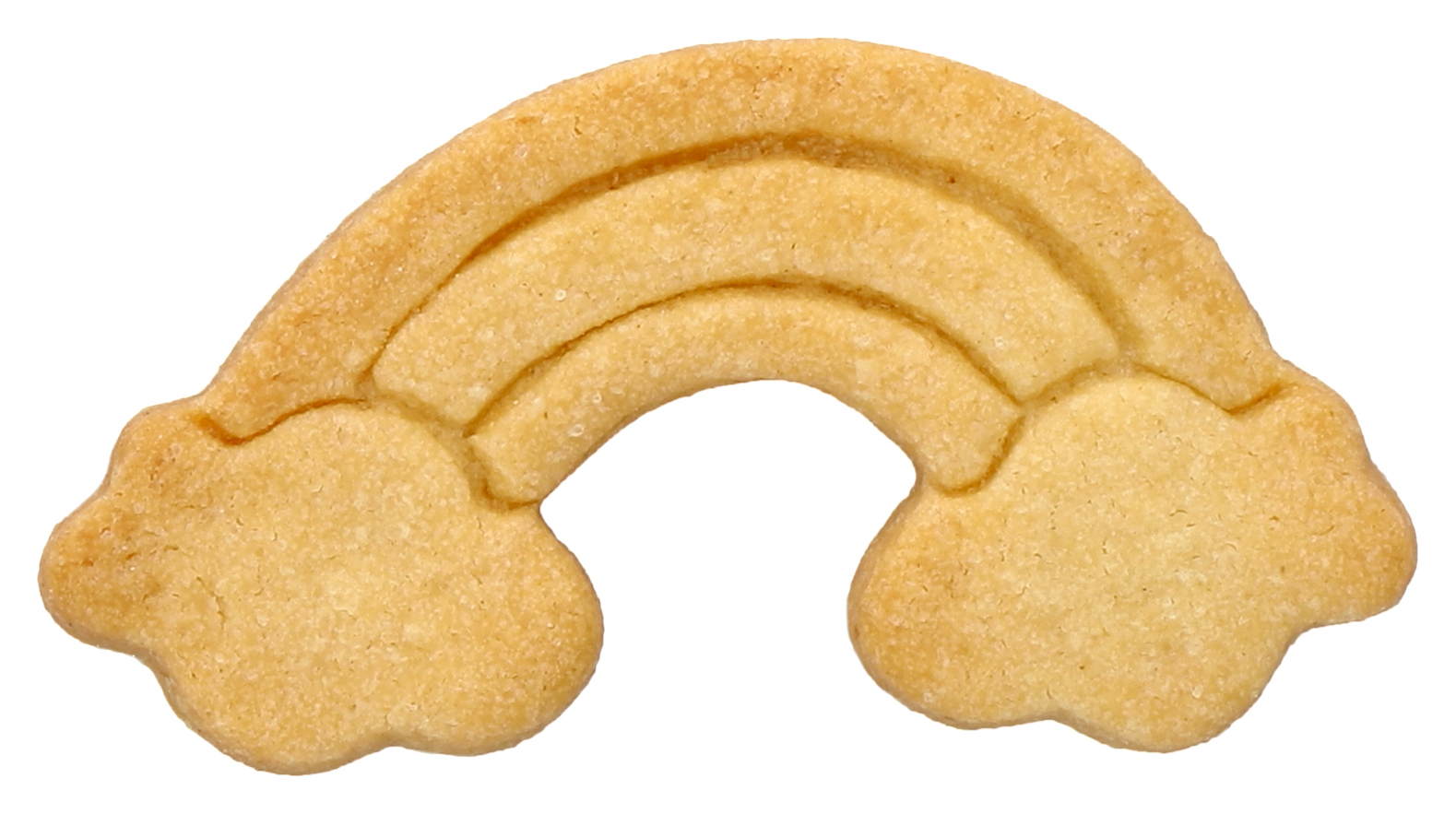Ausstechform Regenbogen, Größe: ca. 7 cm, aus Edelstahl mit Innenprägung, spülmaschinengeeignet.