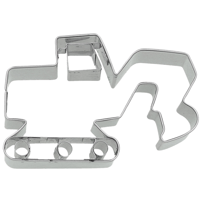 Ausstechform Bagger, Größe: 8,5 x 5,5 x 2,5 cm, Material: Edelstahl, mit Innenprägung.