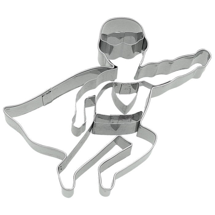 Ausstechform Superheld, Größe: ca. 9 x 8,5 x 2 cm, aus Edelstahl mit Innenprägung.