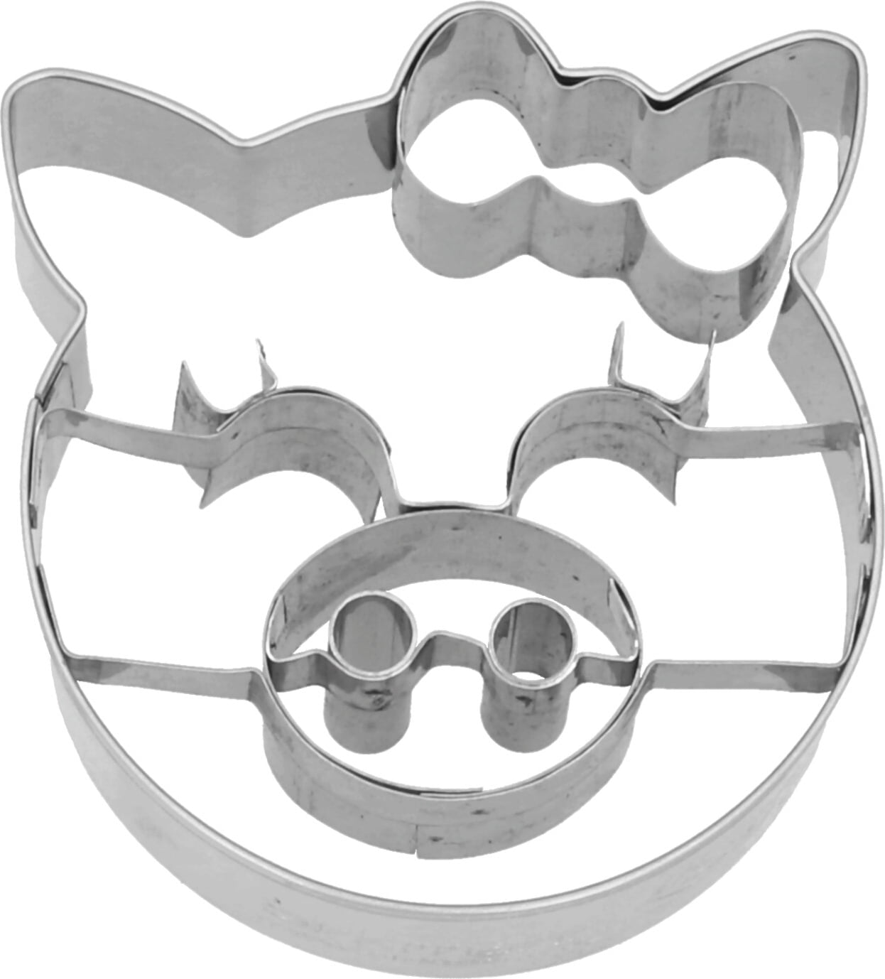 Ausstechform Schweinchen mit Schleife, Größe: ca. 7 cm, Prägeausstecher, Edelstahl, spülmaschinenfest
