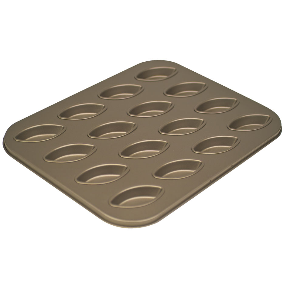 mit hochwertiger Antihaft-Beschichtung, für süße und pikante Häppchen, für bestes Backergebnis, Blech 35 x 27 cm, mit 16 Schiffchen, je 7 cm / 1,5 cm hoch; dazu passend gibt es den Schiffchen-Ausstecher (Art.Nr.: 014-168015), zum einfachen Ausstechen der Schiffchen.