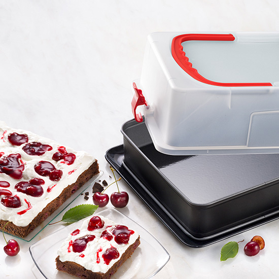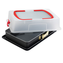 Springform rechteckig mit Emailleboden und Transporthaube, 38x25 cm, Zenker
