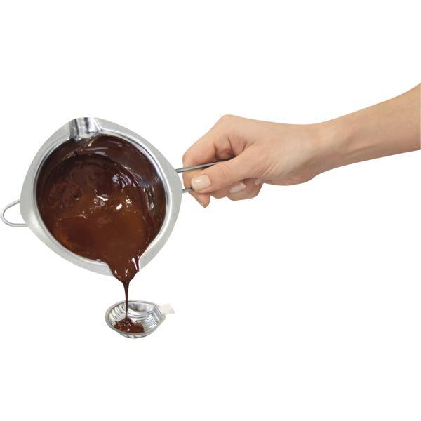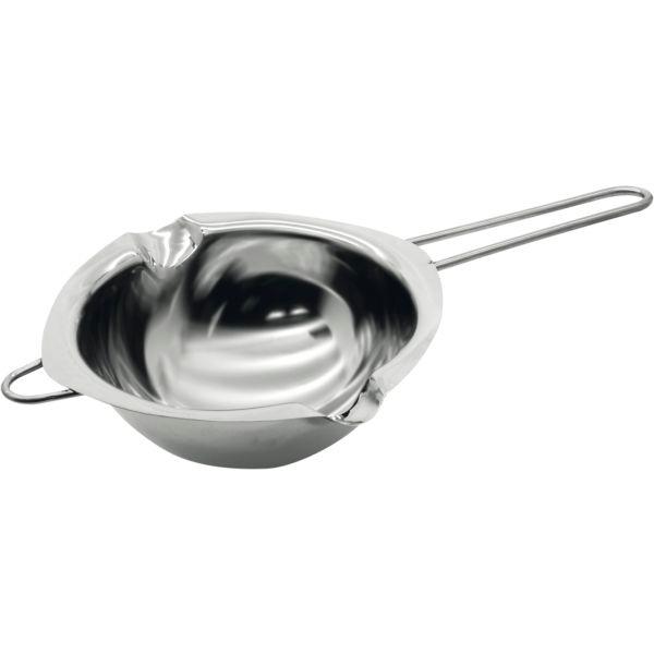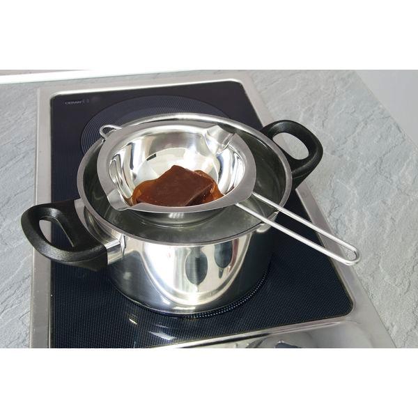 Mit dem langen Griff kann die Schüssel in das Warmwasserbad eingehängt werden.