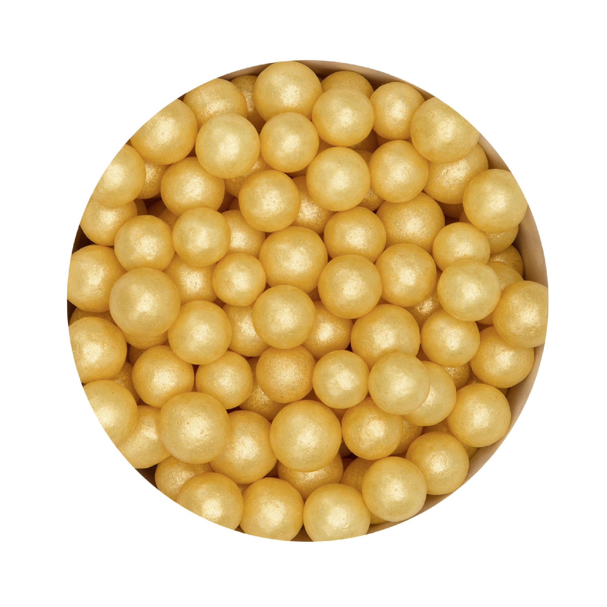 Dekorzucker Perlen Gold Maxi, Größe: ca. 6 mm., Inhalt: ca. 60 g., Besonders geeignet zum Dekorieren und Verzieren von Pralinen, Petits Fours, Torten u.v.m., AZO-freie Farbstoffe!