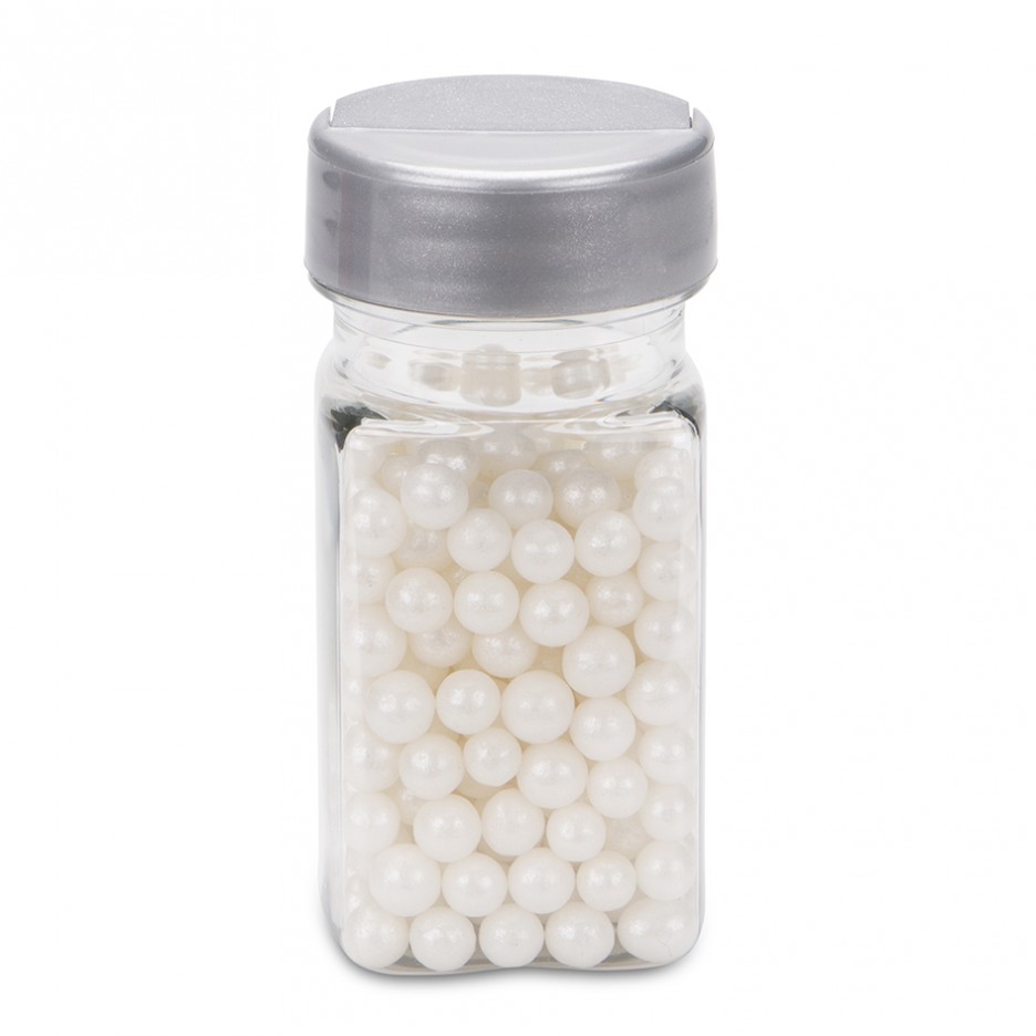 Dekorzucker Perlen Perlmutt Maxi, Größe: ca. 6 mm., Inhalt: ca. 60 g., Besonders geeignet zum Dekorieren und Verzieren von Pralinen, Petits Fours, Torten u.v.m., AZO-freie Farbstoffe!