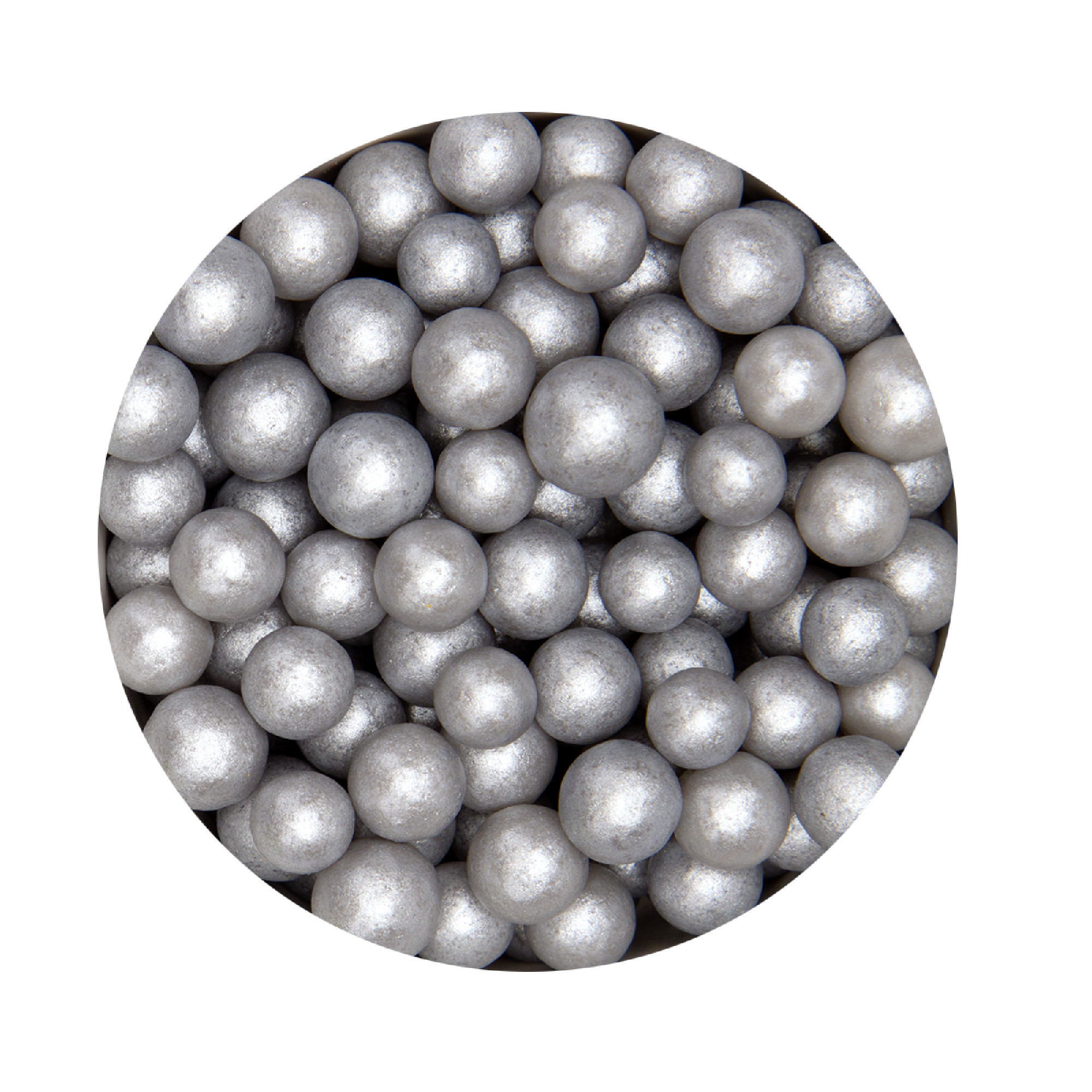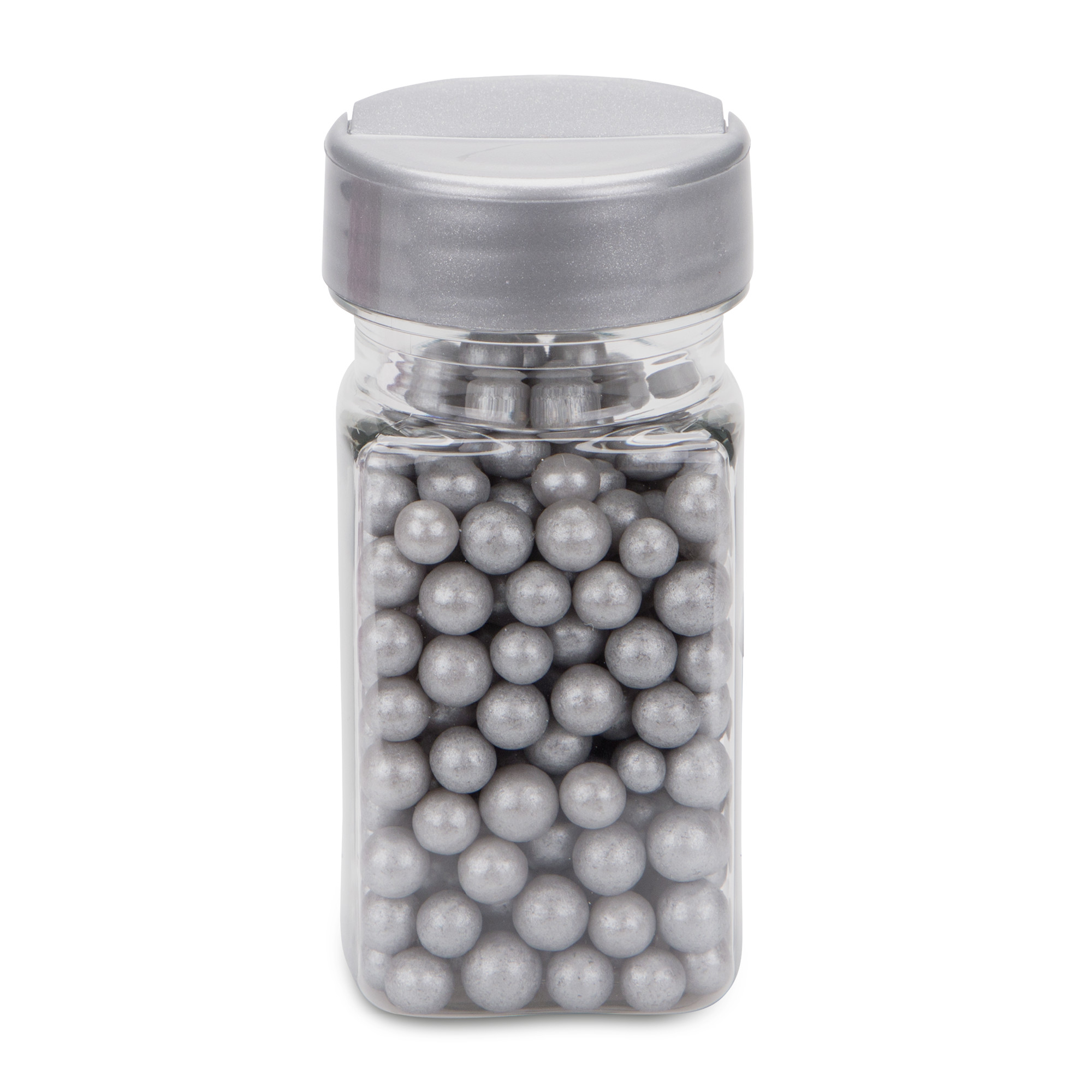 Dekorzucker Perlen Silber Maxi, Größe: ca. 6 mm., Inhalt: ca. 60 g., Besonders geeignet zum Dekorieren und Verzieren von Pralinen, Petits Fours, Torten u.v.m., AZO-freie Farbstoffe!