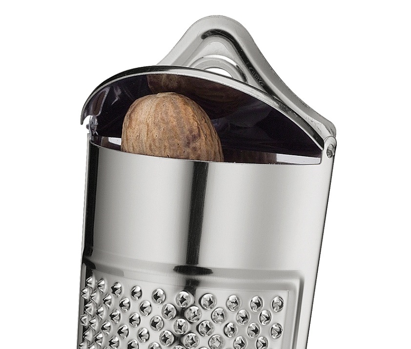 Klein, aber oho! Muskatnüsse würzen nicht nur Eierspeisen, Kartoffelpüree und Spinat, sondern in Begleitung ihrer exotischen Kollegen Nelke und Zimt auch Weihnachtsgebäck. Ihr süßlich-warmes Aroma mit leicht bitterer Note entfaltet sich am besten, wenn die Frucht des Muskatnussbaums frisch gemahlen wird. Das gelingt mit der Muskatreibe CLASSIC von KÜCHENPROFI mühelos. Sie ist ausreichend lang und liegt gut in der Hand, die Reibfläche mit gut geschärften Zähnen aus robustem Edelstahl schafft auch die härteste Nuss. Darauf gewährt der Solinger Spezialist für Küchenaccessoires 5 Jahre Garantie. Zwischen den Mahlzeiten parken Sie die Muskatnuss in dem praktischen Aufbewahrungsfach.
