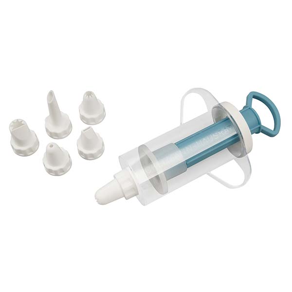 inkl. 6 Tüllen, Größe Spritze: ca. 4,5 x 13 cm, Größe Tüllen: ca. 3 x 5,5 cm, spülmaschinengeeignet.