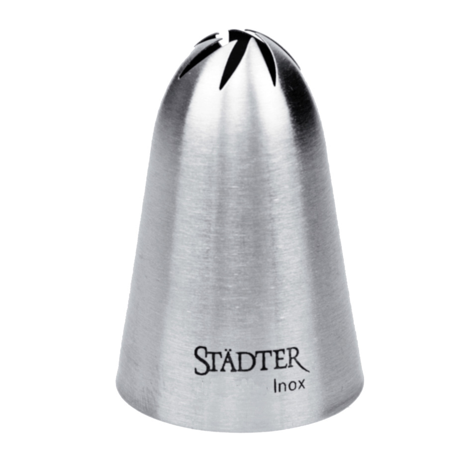 Diese Tüllen sind leicht zu handhaben und ergeben sehr schöne Rosetten-Garnierungen für Sahnetorten und kleine Zuckerblumen. Bei Verwendung dieser Tülle dürfen in der Masse keine Zusätze wie Mandeln oder Nüsse enthalten sein.